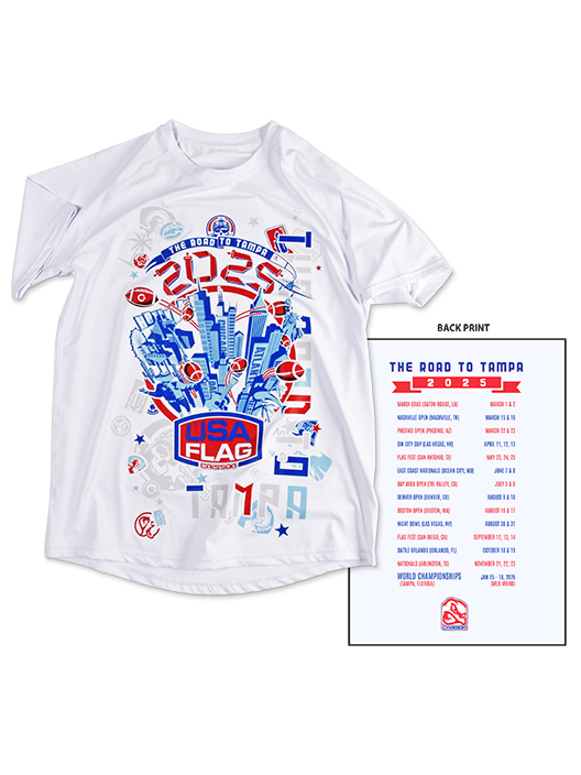 Order your USA Flag x CAISSON TechKnit® Lightweight Tee (2025 Edition) here for direct shipping or pickup at an upcoming USA Flag event.